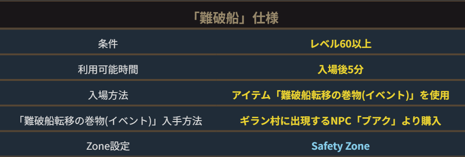「難破船」はレベル60以上のキャラクターが入場できるダンジョンになっています。