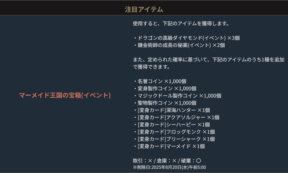 2025年7月30日開始のイベント「超ミスティック!マーメイド王国の異変」についてご案内申し上げます。