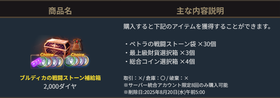 2025年7月30日より販売を開始しました「ブルディカの戦闘ストーン補給箱」のご案内を申し上げます。