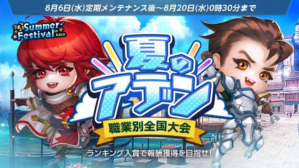 2025年8月6日開始のイベント「夏のアデン職業別全国大会」についてご案内申し上げます。