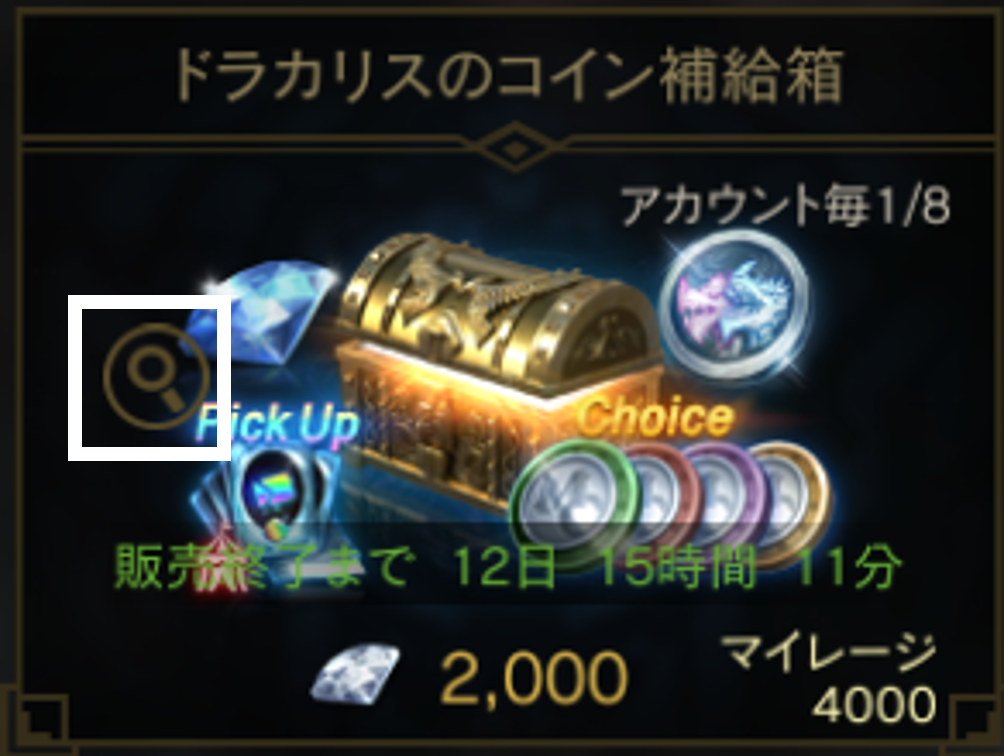 下記の手順の説明は過去に販売した「ドラカリスのコイン補給箱」を例として使用しています。