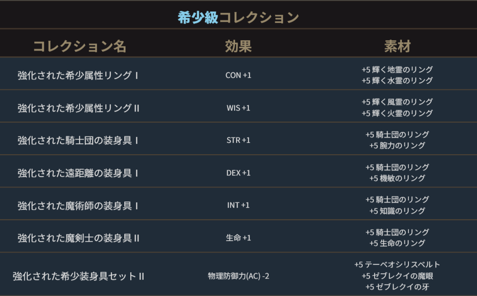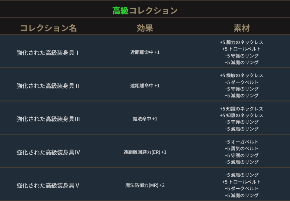 ※「+5 祝福された~」でも代替登録が可能なコレクションとなっています。