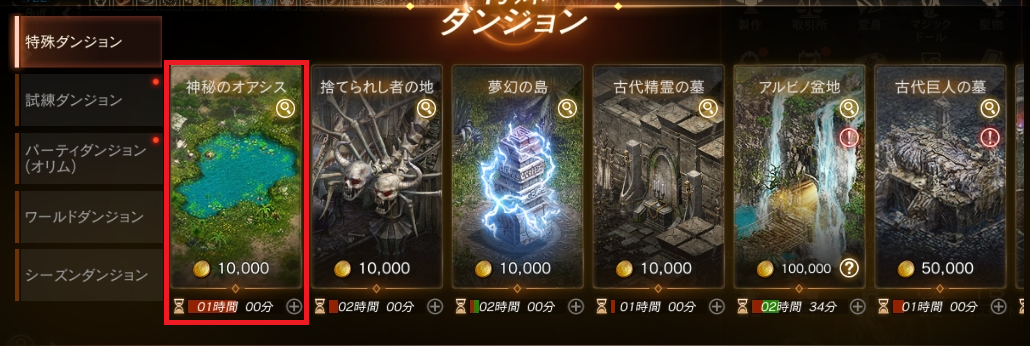 神秘のオアシス ※レベル60以上 |