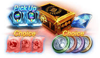 次のアイテムのうち1種を選択して獲得 - 最上級変身ピックアップパック(さすらいのサーカス団)(イベント)1個 - 最上級変身ピックアップパック(アルビノ)(イベント)1個 - 最上級変身ピックアップパック(クラシック)(イベント)1個 - 最上級変身ピックアップパック(悪夢の島)(イベント)1個 - 最上級変身ピックアップパック(オリムの痕跡)(イベント)1個 - 最上級変身ピックアップパック(ジグラット)(イベント)1個 - 最上級変身ピックアップパック(スペシャル)(イベント)1個 - 最上級マジックドールピックアップパック(オーレン)(イベント)1個 - 最上級マジックドールピックアップパック(クラシック)(イベント)1個 |