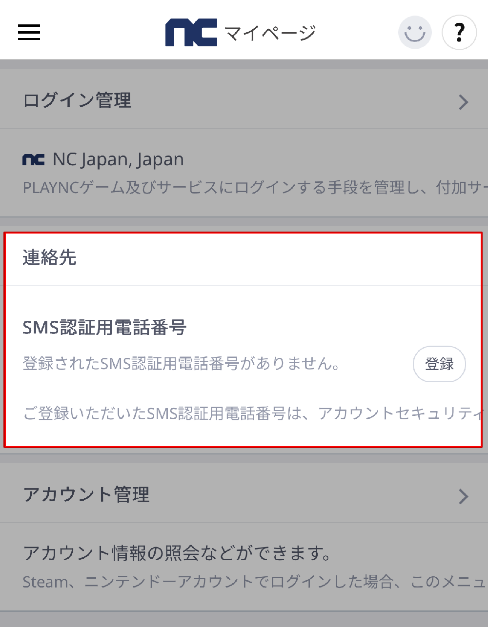 SMS認証用電話番号の設定がない場合は電話番号を登録
