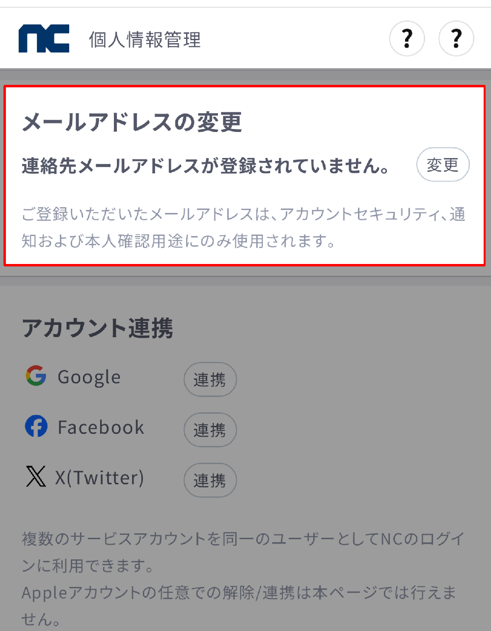 ※メールアドレスとパスワード登録後90日間はメールアドレスの変更が行えませんのでご注意ください。