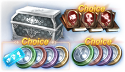 「キアラのガチャパック製作チケット1個」または「総合コイン選択箱3個」のいずれかを選択して獲得できる「最上級財貨選択箱」が3個入ったパッケージです。