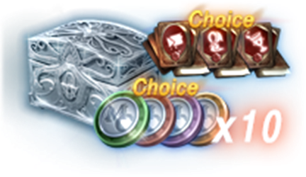 各種コインの種類を選択して定められた確率で1万~50万個獲得できる「総合コイン選択箱10個」と、「総合上級ガチャパック選択箱1個」のパッケージです。