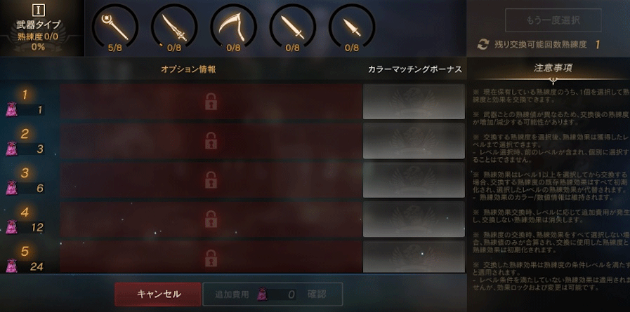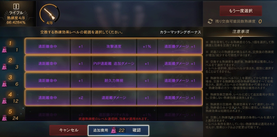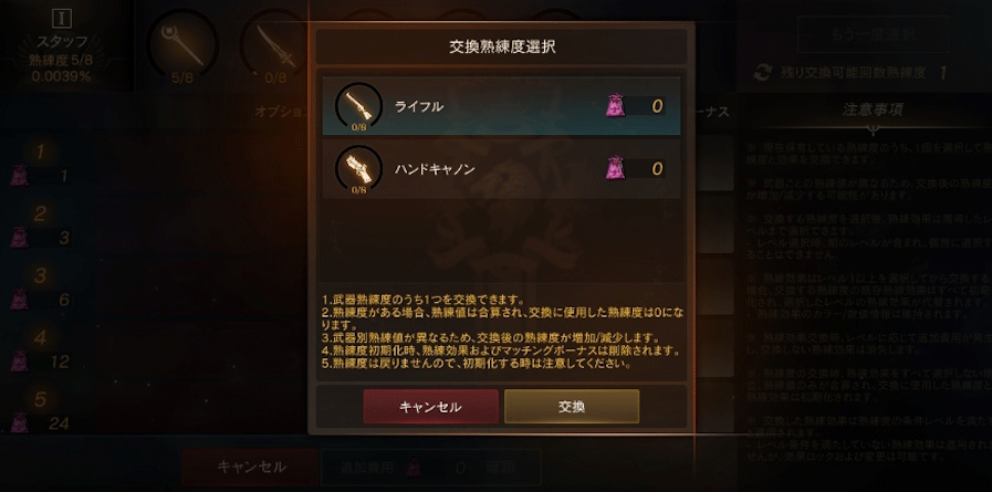 STEP.6熟練度交換で、特定の武器熟練度を選択した職業に対応した熟練度に合算できます。