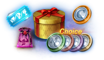次のアイテムのうち1種を選択して獲得 -名誉コイン箱(イベント)1個 -変身製作コイン箱(イベント)1個 -マジックドール製作コイン箱(イベント)1個 -聖物製作コイン箱(イベント)1個 |