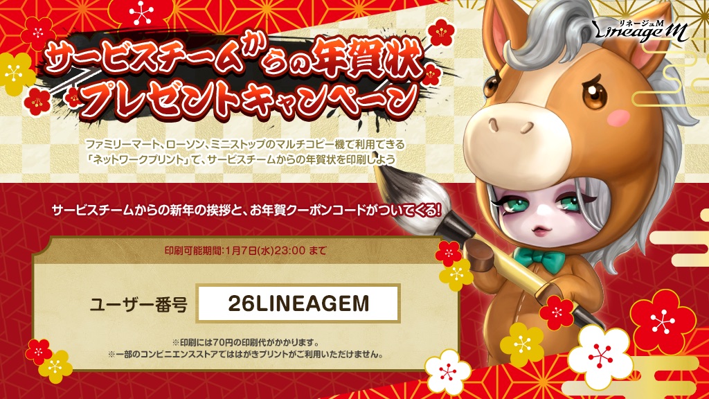 キャンペーン期間中に、全国の対象コンビニでサービスチームからの年賀状を印刷しよう!