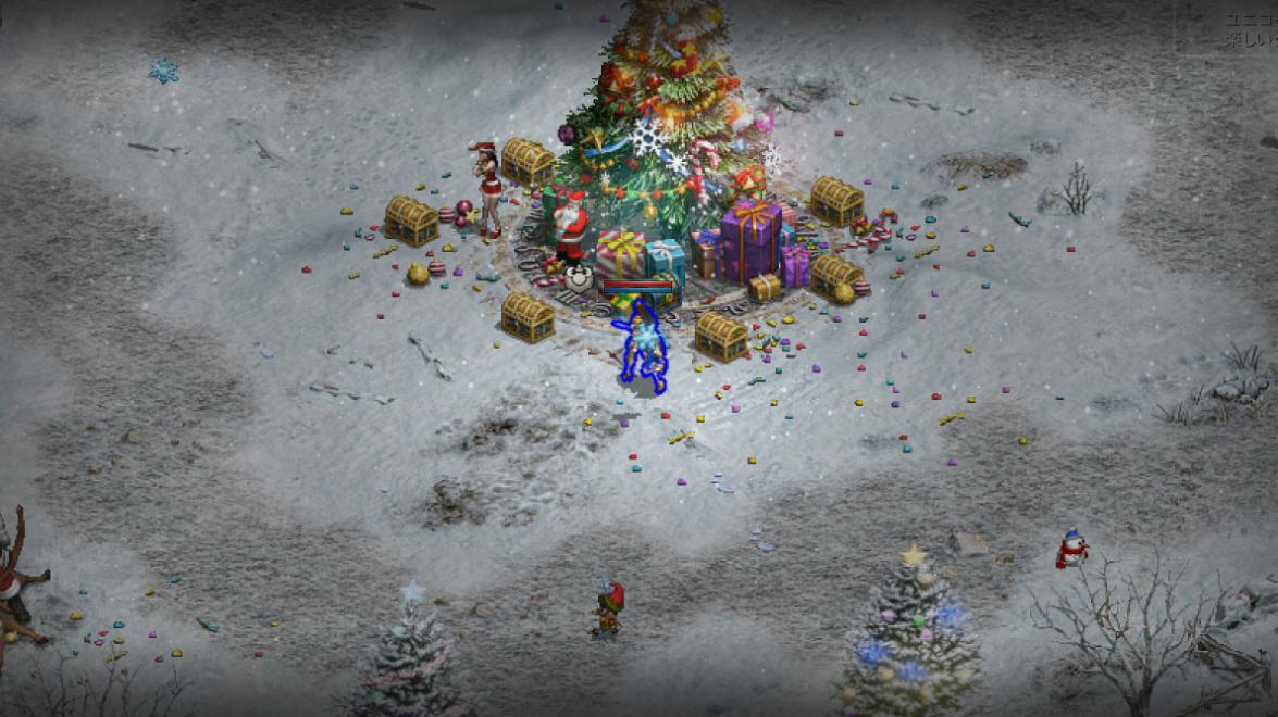 「クリスマス広場」にある「宝箱」を攻撃することで様々なアイテムを獲得できる「サンタの秘められた箱(イベント)」を獲得することができます。