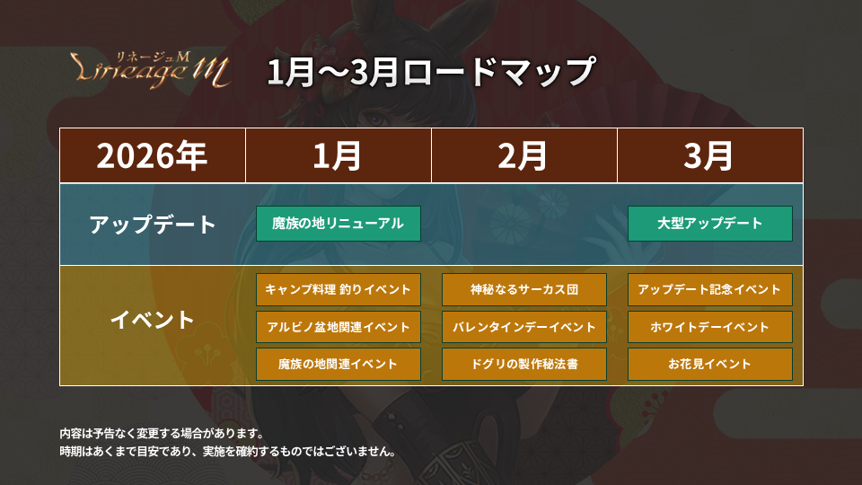 早速ですが、2026年の1月から3月までのロードマップを公開いたします。