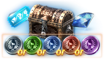 次のアイテムのうち1種をそれぞれ定められた確率に基づいて獲得 -試練のコイン(伝説級)箱1個 -試練のコイン(英雄級)箱1個 -試練のコイン(希少級)箱1個 -試練のコイン(高級)箱1個 -試練のコイン(一般級)箱1個 |