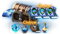 次のアイテムのうち1種を選択して獲得 -祝福の聖水(大)1個 -守護石2個 -ピュアエリクサー10個 -スキルカードガチャパック箱(イベント)2個 |