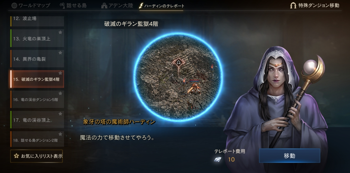 「マップ>アデン大陸>18.ギラン村>魔術師ラグナ」から入場