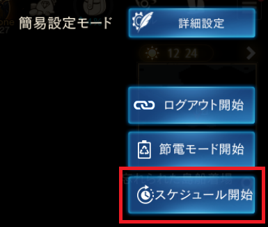 - ②「ログアウトプレイON」を有効にした状態でスケジュールを開始