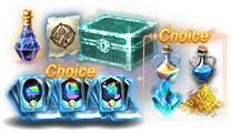 アップデート記念財貨選択箱を使用すると、ピュアエリクサー150個、守護石10個、祝福の聖水(大)10個、上級祝福の粉3万個のうち1種を選択して獲得できます。