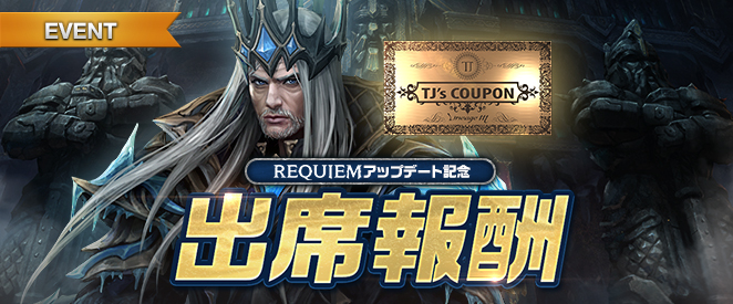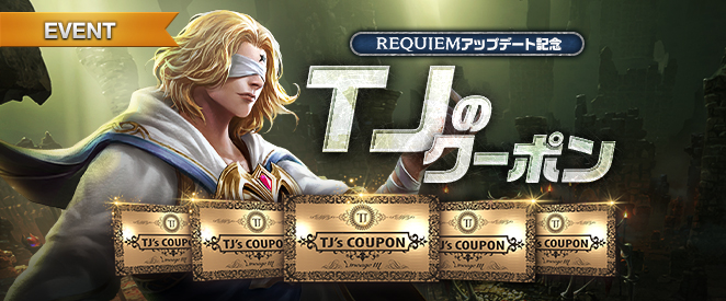 2024年11月27日(水)定期メンテナンス後より開催のREQUIEMアップデート記念「TJのクーポン」開催について、ご案内いたします。