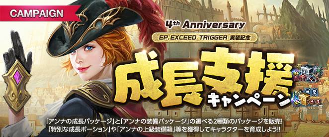 2023年5月24日(水)定期メンテナンス後より、4th Anniversary 「成長支援キャンペーン」を開催いたしました。