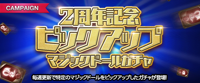 2021年6月2日より「2周年記念ピックアップマジックドールガチャ」の販売を開始しましたので、ご案内申し上げます。