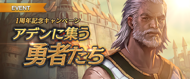 1周年記念プレゼントイベント「アデンに集う勇者たち」開催