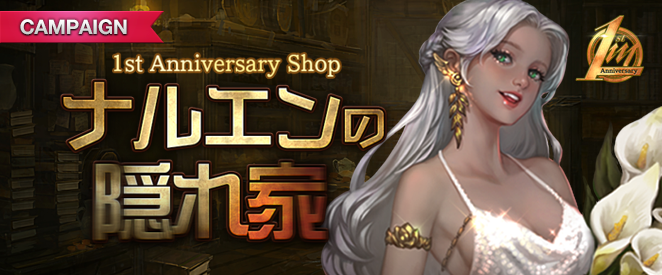 1周年を記念して、「ナルエンの隠れ家」からゲーム内ショップで1周年記念パッケージの販売を開始しました。