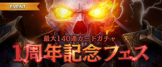 最大140連ガチャ「1周年記念フェス」開催