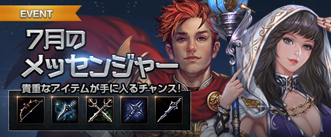 イベント専用ダンジョンへの挑戦や、限定クエストに挑戦できる期間限定イベント「7月のメッセンジャー」についてお知らせいたします。
