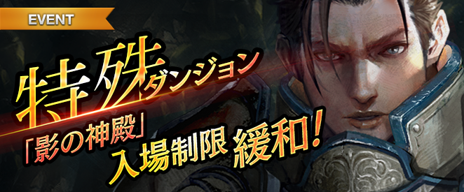 ダンジョン「影の神殿」について、期間限定で実施する入場制限緩和と挑戦方法の変更についてお知らせいたします。